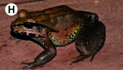 The smoky jungle frog (Leptodactylus pentadactylus) is a species of frog in the family Leptodactylidae. It is found in northern South America as well as parts of Central America.[2] Its natural habitats are tropical and subtropical moist broadleaf forests, subtropical or tropical swamps, subtropical or tropical moist montane forest, rivers, freshwater marshes, intermittent freshwater marshes, and aquaculture ponds.