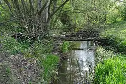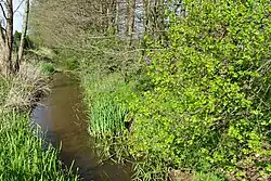 The Smolna is a lowland river of the 3rd order, with a length of 27.46 km[6] or 27.34 km[2] and a catchment area of 88.63 km².[7] The river has several tributaries of the 4th and 5th order, including: the Mesznik, Sucha Rzeka and Gorzesławka streams, and is also fed by numerous drainage ditches and streams.[3][4] According to data from 2009, the permissible standards for NH4, NO2 and Cu were exceeded in the Smolna waters, which makes the river an unfriendly environment for the existence of cyprinids.[8] Along the river in the Grędzińskie Forest reserve there is a complex of hornbeam forests, oak forests and extensive meadows, which is a refuge for amphibians found here, among others. fire-bellied toads, tree frogs and newts.[4] The Smolna River falls under the fishing district of the Widawa River No. 3, belonging to the PZW Wrocław branch.[6]