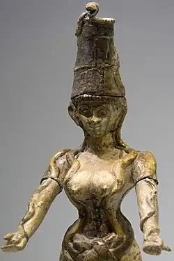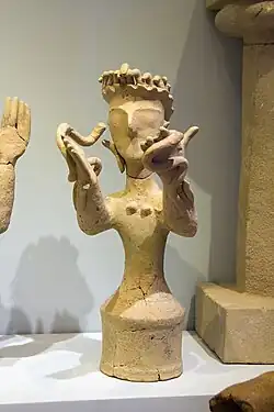 ![Bronze Minoan figure in Berlin, LM I, probably a worshiper, with either snakes or tresses of hair.[9]](./_assets_/Minoan_figurine_praying_woman%252C_16_c_BC%252C_AS_Berlin%252C_Misc._8092%252C_144324.jpg)