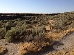 The Snake River Plain is a geologic feature located primarily within the U.S. state of Idaho. It stretches about 400 miles (640 km) westward from northwest of the state of Wyoming to the Idaho-Oregon border. The plain is a wide, flat bow-shaped depression and covers about a quarter of Idaho. Three major volcanic buttes dot the plain east of Arco, the largest being Big Southern Butte.