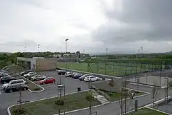 Football fields of Hundsund grendesenter. The closer one is turned into a bandy field in winter.