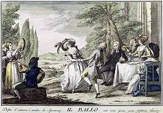 During the Baroque Era court balls served to display social status. A formal ball opened with a branle in which couples stood in a line in order of their place in the social hierarchy, the most highly regarded couples dancing first. The Menuet and the Gavotte gained popularity. Balls often ended with an English country dance. France gained a pre-eminence in dance, but the French Revolution created a shift away from formality.[4]