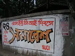 One of the major campaigns of the party in West Bengal has been its agitations against the educational policy of the Left Front state government. The decision of the Left Front government to remove the English language from primary education sparked a mass movement led by the SUCI for the reinstatement of English.[31][32][33]