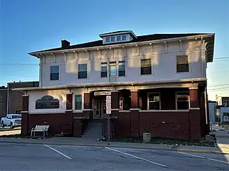 Sojourners Club is a historic women's club and public library building located at Kirksville, Adair County, Missouri. It was built in 1916, and is a two-story, Prairie School / American Craftsman style rectangular brick and stucco building. The building measures approximately 34 feet by 56 feet. It features a full-width, one-story verandah and second-story terrace.[2]: 7