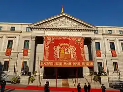 The Solemn Opening of the Parliament (Spanish: Solemne Apertura de las Cortes Generales) of the Kingdom of Spain is an event which takes place approximately in the second week after the investiture of the President of the Government. For this celebration, all the Deputies and Senators that forms the Cortes Generales are summoned, as well as the Government and the main officials of the Judiciary. The event takes place in the Chamber of Congress of the Deputies of the Palace of the Cortes. It is carried out between large security measures, both inside and outside of the Palace of the Cortes.