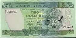 | SI$2 | Green | Coat of arms of Solomon Islands | Fishermen | 2006 | ||