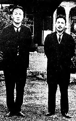 Lyuh founded the Committee for the Preparation of Korean Independence (CPKI). Lyuh asked Song on a number of occasions to join, but Song refused. On one occasion, their disagreements escalated into a shouting match.[4] To counter the CPKI, Song became the founding leader of the National Foundation Preparation Committee (NFPC) on 7 September and the Korea Democratic Party on 16 September.[3]