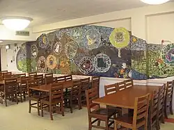 Bettelheim also believed that the Orthogenic School should feel like a home to the students. Furniture in the dormitories was usually antique and very expensive. Students in the dining rooms dined on imported china with metal silverware and glass cups, which was unusual for a treatment center. During the three renovations to the building which Bettelheim supervised, a number of art pieces were commissioned for the school by Bettelheim, including a mural by Jordi Bonet.[5]