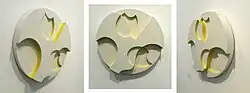 A museum honouring[23] Taeuber-Arp and Jean Arp opened in 2007 in a section of the Rolandseck railway station in Germany, re-designed by Richard Meier.[10] The video work "Sophie Taeuber-Arp's Vanishing Lines" (2015) by new media artist Myriam Thyes from Switzerland is about her "Lignes" drawings, segmented circles intersected by lines.[24][25]