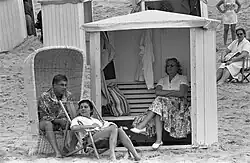 Soraya was fascinated with Hollywood and enjoyed meeting American film stars during her stay in Los Angeles.[17] During her time in Los Angeles, Soraya met her favorite stars who were Grace Kelly, Lauren Bacall, Bob Hope, Esther Williams, and Humphrey Bogart.[17] A photograph of Queen Soraya water-skiing in Miami while wearing a bikini became extremely controversial in Iran.[17] Soraya was widely condemned for the immorality of wearing her swimsuit, which was not considered a proper dress for a Muslim, and the photo was banned in Iran in an attempt to silence the criticism of the ulema.[17]