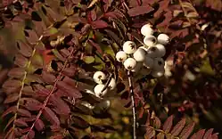 Sorbus frutescens is a species of rowan native to Gansu province of China.[2] Often mistakenly lumped in with Sorbus koehneana, it is a very small tree reaching only 2 m at maturity, with white fruit[3] against dark green pinnate leaves which turn shades of red and bronze in autumn.