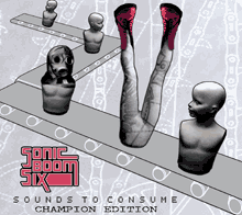 Sounds to Consume is Sonic Boom Six's second release for Moon Ska Europe and comprises four new tracks alongside the four tracks from their original release, The Turbo EP. It has since been reissued twice, firstly as the 'Champion Edition' which comprised the original 8 tracks and 8 bonus tracks, and the subsequent reissue of the Champion Edition which was remastered as well as featuring a further 2 bonus tracks. Both Champion Editions are housed in digipack packaging and contain a different booklet to the original release.