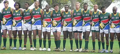 The senior side represents the best South African born and developed players as selected from clubs and leagues of AFL South Africa.