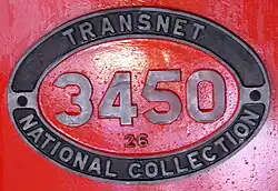 These extensive modifications justified reclassification and the locomotive became the first and only Class 26, although its original Class 25NC number 3450 was retained. The Class 26 number plates, builder's plate and the Salt River rebuild plate which were attached to the cab sides at the time, have since been replaced with plates inscribed "Transnet National Collection".[5]