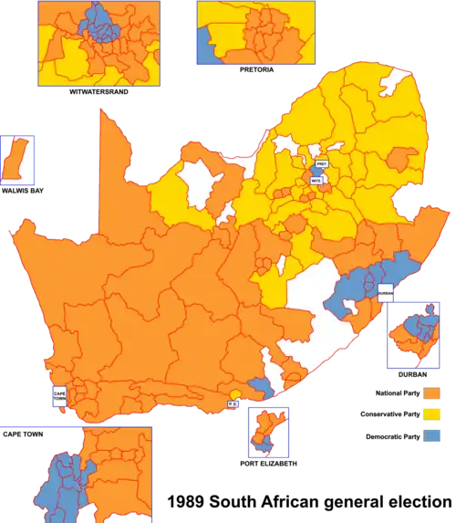 - ^ South Africa: Parliamentary Chamber: House of Assembly: Elections held in 1989 Inter-Parliamentary Union