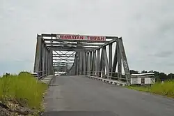 There are total 1,139.79 kilometers of road in the regency, majority of which is maintained by the regency government. 328.73 kilometers have been paved with asphalt, with the rest being either concrete, gravel, or other surfaces.[12] Despite being located inland, the regency have passenger ports utilizing Barito River such as in Buntok and Jelapat.[23][24] The regency is served by Sanggu Airport, located in town of Buntok, with regular flights to major cities in Kalimantan such as Palangka Raya and Banjarmasin.[25][26] The airport was planned to be expanded to accommodate bigger planes in 2020.[26]