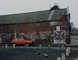 The UDA in Sandy Row had garnered a reputation for the unruly and drunken nature of its members with a "day of action" on 7 February 1973 organised by the Ulster Vanguard and the Loyalist Association of Workers descending into chaos in the area. With few becoming involved in a proposed withdrawal of labour, the local UDA undertook a series of assaults and car burnings, before setting fire to a shop on the corner of Sandy Row. They then shot at the fire brigade when they arrived, killing Brian Douglas, a Protestant fireman, and precipitating a night of rioting and violence in both the south and east of the city.[15] The group also attacked nearby Durham Street, killing two Catholics from the area in quick succession in March 1973.[16] Robert Fisk, who worked as the Belfast correspondent for The Times from 1972–75, suggested that the Sandy Row UDA was one of the most bellicose of all the paramilitary units in Belfast during this period.[5] Henry McDonald and Jim Cusack confirmed this, declaring that the Sandy Row and Donegall Pass UDA were almost out of control at the time, with both its men and women inured to killings and beatings.[17]
