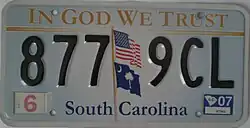 - ^ a b "South Carolina License Plates". www.licenseplates.cc. Retrieved September 23, 2023.