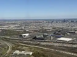 ![]() The South Philadelphia Sports Complex as it existed in 2003–2004. Clockwise from top right: Citizens Bank Park, Lincoln Financial Field, Xfinity Mobile Arena (formerly the site of John F. Kennedy Stadium), the Spectrum (razed in 2011), and Veterans Stadium (imploded in 2004). Interstate 95, which passes the complex, can be seen at the bottom right corner of the photo. | |