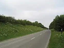 Crossing the road, the boundary goes due eastwards to meet the A1, which it then follows due south on the east side of the road. The boundary goes through The Fox, with North Witham parish to the east, to a point just south of the A1 interchange. The A1 was upgraded in early August 1971, through Rutland, to Tickencote (built by Rutland County Council). Before the road was improved, the South Witham crossroads on the A1 lay at the point where the sliproads join today.