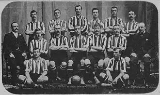 Southampton Football Club is an English professional association football club based in Southampton, Hampshire. Founded in 1885 as St Mary's Y.M.A. and later known as Southampton St Mary's,[1] they became a professional club in 1891,[2] and co-founded the Southern League in 1894.[3][4] Southampton won the Southern League championship six times between 1896 and 1904,[4][5][6] and were later elected to the Football League in 1920 as co-founders of the Third Division.[6][7] The Saints finished as runners-up in their first season,[8] and the following year received promotion to the Second Division as Third Division South champions.[6][9] The club first entered the First Division in 1966,[10] and currently play in its modern-day counterpart, the Premier League.[6] Southampton won the FA Cup in 1976,[11] reached the final of the League Cup in 1979 and 2017,[12][13] and won the League Trophy in 2010.[14]