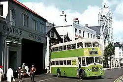 It was during the late 1950s and 1960s that Southdown purchased many of the vehicle types most commonly associated with the company, notably the Leyland Titan PD3 'Queen Mary' vehicles, of which 285 were delivered with Northern Counties bodywork.[12] Southdown did not take deliveries of rear engined double deck vehicles until 1970, when it purchased a batch of ten Daimler Fleetlines with Northern Counties bodywork for delivery to Brighton & Hove,[13] as well as a number of Bristol VRTs with Eastern Coach Works (ECW) bodies painted in green and cream livery.[14] A further batch of Fleetlines with ECW bodywork were delivered in 1972.