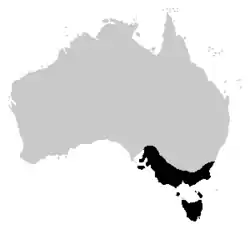 The species is native to south-eastern Australia, found in South Australia, Victoria, New South Wales and Tasmania. It was introduced to Greymouth on the West Coast of New Zealand in 1875, and has since become widely established in the North Island, South Island and Chatham Islands.[5]