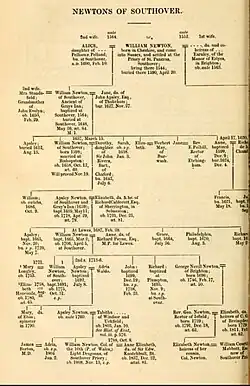 William Newton died in 1648 and his second wife Jane died in 1650. William’s son by his first wife William Newton (1598–1658) inherited the property. He was born in 1598 in Lewes and in 1637 he married Dorothy, daughter of Sir John Rivers 1st Baronet.[11] He died in 1658 and his second son Apsley Newton (1639–1718) became the owner of Southover Grange. It then passed to his grandson William Newton (1691–1775) because his son had predeceased him. When he died in 1775 Southover Grange was inherited by his great nephew Colonel William Newton.[8]