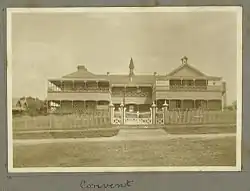 In April 1900, the Roman Catholic Church purchased a parcel of land for a convent on Marine Parade opposite the pier (27°57′56″S 153°24′54″E / 27.9655°S 153.4151°E).[26][27] The Star of the Sea College opened as day school on 21 January 1901. Operated by the Sisters of Mercy, there were about 60 students enrolled on the opening day.[28] In 1934, the school commenced offering secondary school education.[29] The school closed at the end of 1990 with the girls transferring to Aquinas Catholic College (previously a boys-only school).[13][30] The site was sold with buildings being demolished in 2016.[31] The demolition unearthed a time capsule placed in March 1988 as part of the Australian bicentenary celebrations.[32]