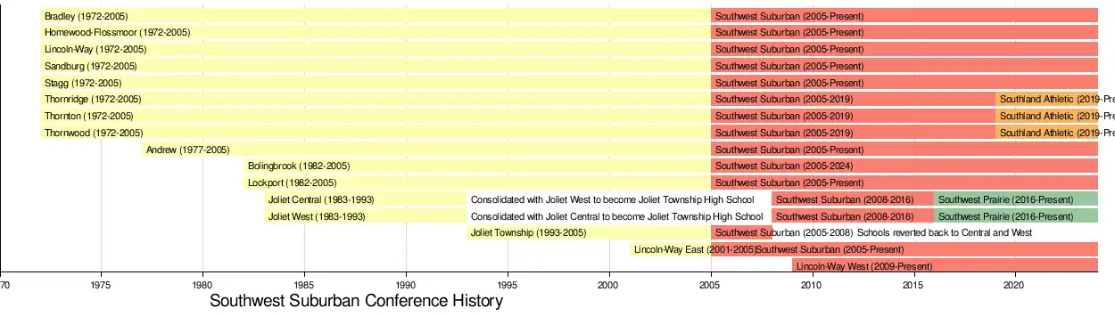 This timeline represents the current schools within the Southwest Suburban Conference that were a part of the SICA..
