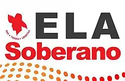 In April 2012, ALAS presented the signatures required to become the official representative of "Sovereign Associated Free State" in the referendum and co-representative of the "No" option.[136] Within the PPD, Acevedo Vilá emerged as the leader of the faction that supported the Sovereign Associated Free State, while two additional groups, Populares Pro ELA soberano (lit. "PPD affiliates pro-Sovereign Associated Free State") and Amigos del ELA Soberano (lit. "Friends of the Sovereign Associated Free State"), joined ALAS.[137][138][139] The MUS formed alliance with sovereignts candidates of the PPD, but did not take an official stance of the referendum.[140]