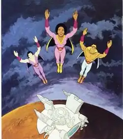 Space Sentinels (originally titled Young Sentinels and renamed midway through its only season) is a Saturday morning animated series produced by Filmation which debuted on the American NBC network on September 10, 1977, and ran for thirteen half-hour episodes.[1] The science fiction action series follows a superhero team during missions to protect the Earth.[2]