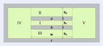 If w ≫ h1, h2 ≫ t, then the field in region IV and V and can be ignored.