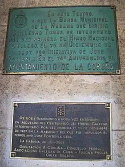 When the Galicians began to settle in some parts of the island, they began to produce and work both in the fields and in Havana. The Gran Teatro de La Habana previously called Gran Teatro -Centro Gallego until 1961, was built, which housed a very large theater inside, and it was in Havana where the Galician Anthem, called "Os Pinos" (Los Pinos), was sung for the first time in 1924.