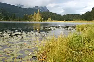 The lake is located amongst moraines from the Würm glaciation which seal the bottom of the lake and did create the depression for the lake with their embankments.[1] In addition around the lake are conglomerates of the mainly Late Cretaceous Gosau Group.[5]