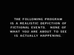 The filmmakers were required to include on-screen disclaimers at the beginning and end of every commercial break in order to assure viewers that the events were a dramatization. The word "dramatization" also appeared on the screen during key moments of the original broadcast. Additionally, WCIV placed the word "Fiction" on screen at all times during its showing of the movie. The film also made use of "accelerated time"—events said to take place hours apart instead are shown only minutes apart. In addition, NBC sent releases to the various military commands in the Charleston area of the movie's airing, so they could inform their attached servicemembers to be prepared for the possibility of nervous phone calls from home, and could reassure their relatives and friends back home that what was airing was in fact a fictional dramatization, and not a real news story. Nonetheless, there were still news reports of isolated panic in Charleston. Much as claimed with the famous 1938 radio broadcast of The War of the Worlds, it was entirely possible for viewers to tune in between disclaimers and make a snap judgment about what they were seeing, although in both cases a quick flip of the dial would reveal that no other stations were covering this supposedly major news event. When the program was rebroadcast in 1984, the only disclaimers were made at the commercial breaks; there were none on the screen while the action was taking place.[5][6]