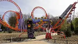 Speed of Sound is a steel Boomerang roller coaster in Walibi Holland. It was manufactured by Vekoma and opened on April 22, 2000 as La Via Volta.[1] It was open until 2007 when the park announced it would be shut down. That year, the train was sold to Pleasurewood Hills in England and now operates on Wipeout and the track remained in place at Walibi World. On 30 January, Walibi Holland announced that the La Via Volta will reopen in 2011, with a new style train from Vekoma under the name of Speed of Sound. P&P Projects was responsible for the design and build of this new attraction.[2] Walibi Holland announced that it held a competition to win tickets for the opening of the roller coaster on April 6, 2011 [3]