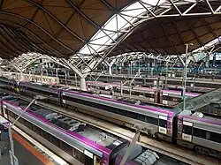 The station is the terminus of the state's regional railway network, operated by V/Line, The Overland rail service to Adelaide, and NSW TrainLink XPT services to Sydney.[8] It is also served by metropolitan rail services, operated by Metro Trains, and connects with Flinders Street station and the underground City Loop.[9] It is the second-busiest railway station in Melbourne's metropolitan network, with 14.019 million metropolitan passengers recorded in 2023/24 [10] and 5.925 million regional passengers through the V/Line network.[2][11]