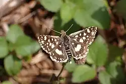 Spialia dromus, the forest sandman, dromus grizzled skipper or large grizzled skipper, is a butterfly of the family Hesperiidae. It is found in tropical Africa. In South Africa it is found along the eastern Cape coast to KwaZulu-Natal into Eswatini. It is also present in Mpumalanga and the Limpopo Province into northern Gauteng and the extreme north-west of the North West Province.