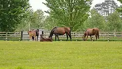 Overall administration of Irish horse-racing is carried out by Horse Racing Ireland. Horse Racing Ireland is responsible for racing in both the Republic of Ireland, which has 24 racecourses, and in Northern Ireland, which has 2 racecourses. Ireland's top tracks are the Curragh and Fairyhouse. The breeding industry (including the world's largest thoroughbred breeding operation, Coolmore Stud) has produced many top race horses.[27]