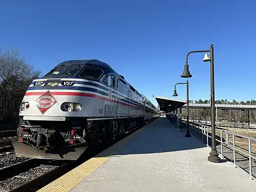 Spotsylvania station is a commuter rail station on the Virginia Railway Express Fredericksburg Line, located off US Route 17 in Spotsylvania County, Virginia, about 5 miles (8 km) south of downtown Fredericksburg in the unincorporated community of Olive (with a Fredericksburg mailing address). It opened on November 16, 2015 – the first extension of VRE service since its opening.[1][2]