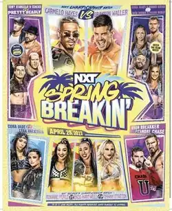 Spring Breakin' is an annual professional wrestling television special produced by WWE. The inaugural Spring Breakin' event was held as a special episode of NXT, on May 3 and took place at NXT's home base of the WWE Performance Center in Orlando, Florida.[1] On the April 11, 2023, episode of NXT, it was announced that the second Spring Breakin' would take place on April 25, 2023, thereby establishing Spring Breakin' as an annual Spring event for NXT.[2][3]