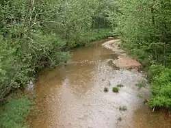 The stream source is the confluence of the North Fork Spring Creek and South Fork Spring Creek in Howell County[2] about 2.5 miles west of the community of Burnham and five miles southwest of Willow Springs. The stream is entirely within the Mark Twain National Forest. The stream flows west-southwest passing under Missouri Route AP and enters Douglas County just southeast of the Noblett Lake Recreation Area and receives the flow of Noblett Creek as it turns to the south-southwest.[3] The stream is fed by numerous springs as it flows past the community of Roosevelt.[4] The stream passes under Missouri Route 14 just east the route 14 - route 181 junction at Twin Bridges and reaches its confluence with the North Fork River just north of the Douglas - Ozark county line.[5][6]