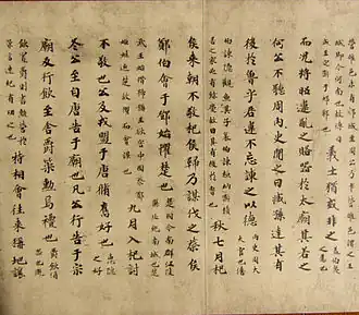 The Annals records main events that occurred in Lu during each year, such as the accessions, marriages, deaths, and funerals of rulers, battles fought, sacrificial rituals observed, celestial phenomena considered ritually important, and natural disasters.[1] The entries are tersely written, averaging only 10 characters per entry, and contain no elaboration on events or recording of speeches.[1]