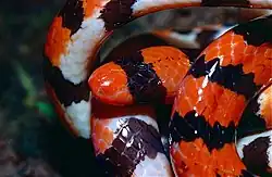 Studies have been conducted on how sexual selection manifests itself in snakes and lizards. Snakes use a variety of tactics in acquiring mates.[21] Ritual combat between males for the females with which they want to mate includes topping, a behavior exhibited by most viperids, in which one male twists around the vertically elevated fore body of his opponent and forcing it downward. Neck biting commonly occurs while the snakes are entwined.[22]
