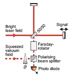- ^ Grangier, P.; Slusher, R. E.; Yurke, B.; LaPorta, A. (November 9, 1987). "Squeezed-light-enhanced polarization interferometer". Physical Review Letters. 59 (19): 2153–2156. Bibcode:1987PhRvL..59.2153G. doi:10.1103/PhysRevLett.59.2153. PMID 10035438.