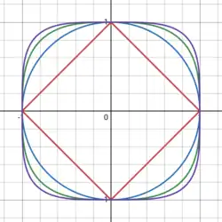 - ^ Chebolu, Sunil; Hatfield, Andrew; Klette, Riley; Moore, Cristopher; Warden, Elizabeth (Fall 2022). "Trigonometric functions in the p-norm". BSU Undergraduate Mathematics Exchange. 16 (1): 4, 5.