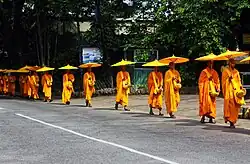 Theravada Buddhism is the largest and official religion of Sri Lanka, practiced by 70.2% of the population as of 2012.[2] Practitioners of Sri Lankan Buddhism can be found amongst the majority Sinhalese population as well as among the minority ethnic groups, most notably the Sri Lankan Chinese.[3] Sri Lankan Buddhists share many similarities with Southeast Asian Buddhists, specifically Thai Buddhists and Burmese Buddhists due to traditional and cultural exchange. Sri Lanka is one of only five countries in the world with a Theravada Buddhist majority, and others are Thailand, Cambodia, Laos and Myanmar.