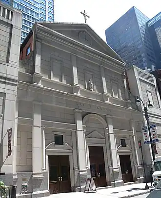 The parish was intended to serve Italian laborers of the new Grand Central Depot.[1][2] Rev. Harry Cummings Macdowell, nephew of Rev. Jeremiah Williams Cummings of St. Stephen's, was the first pastor, assisted by Rev. A. Catoggio. The parish was organized on July 13, 1873. Macdowell had rented a hall over Croton Market on 42nd Street as a temporary chapel and passed out handbills to announce the fact to the local Catholic residents.[5]