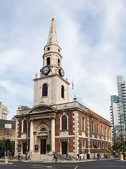 St George the Martyr is a church in the historic Borough district of south London. It lies within the modern-day London Borough of Southwark, on Borough High Street at the junction with Long Lane, Marshalsea Road, and Tabard Street. St George the Martyr is named after Saint George. The church is a Grade II* listed building.[2]
